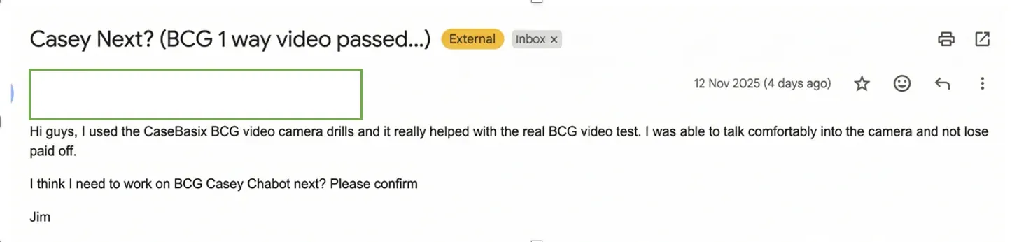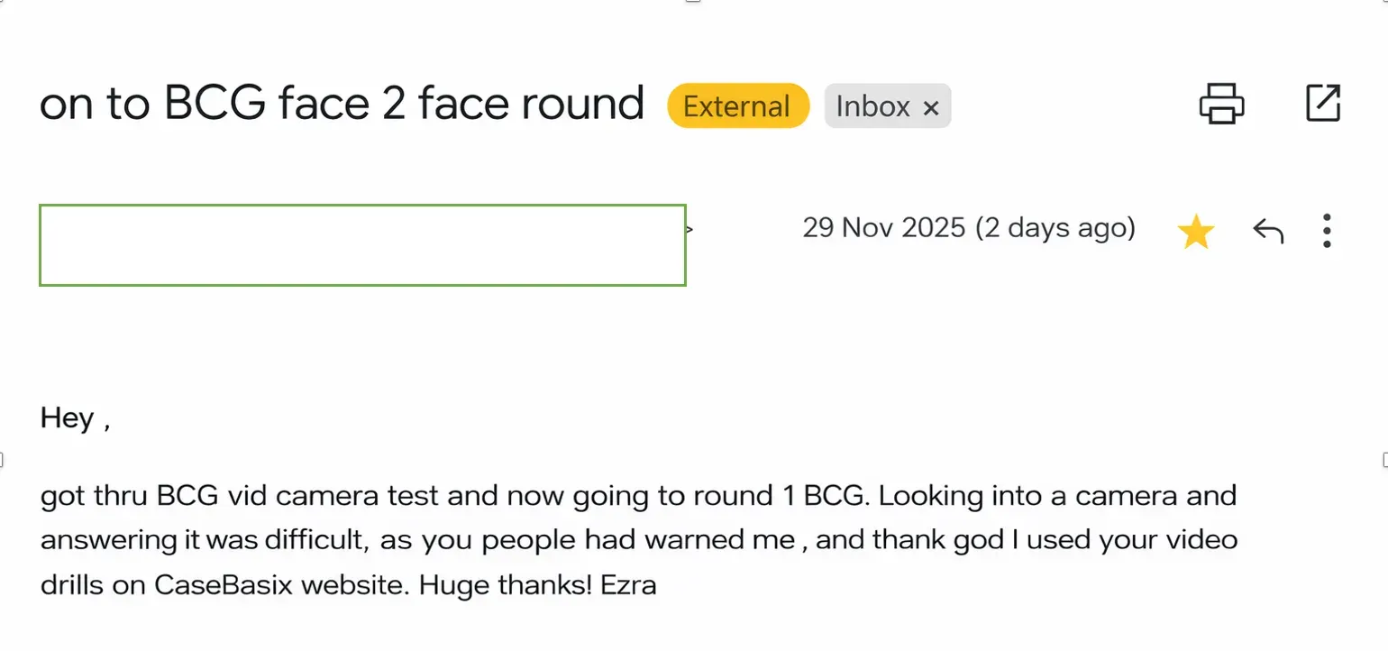 "Practicing with CaseBasix made my BCG one-way interview feel easy."