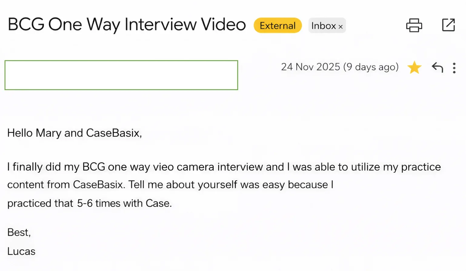 The mock video interview questions from CaseBasix gave me an edge for each BCG video prompt.