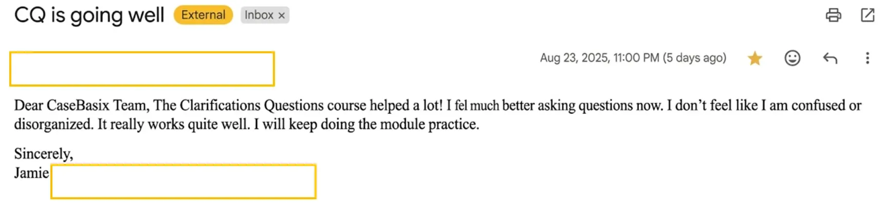 CaseBasix showed me how to ask focused clarifying questions instead of vague ones that waste time.