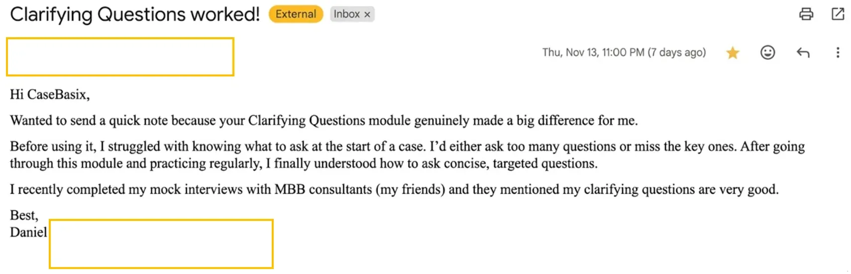 Practicing with CaseBasix meant I never skipped clarifying the client’s objective and avoided wrong frameworks.
